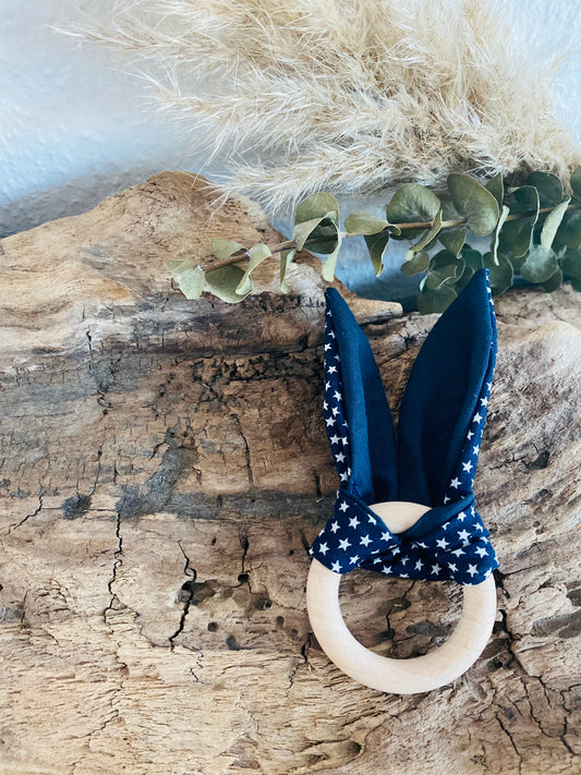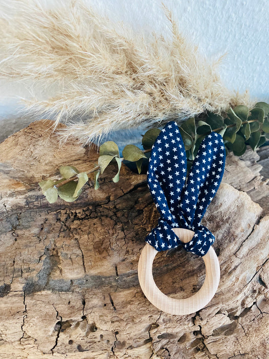 Beißring weiße Sternchen mit blau