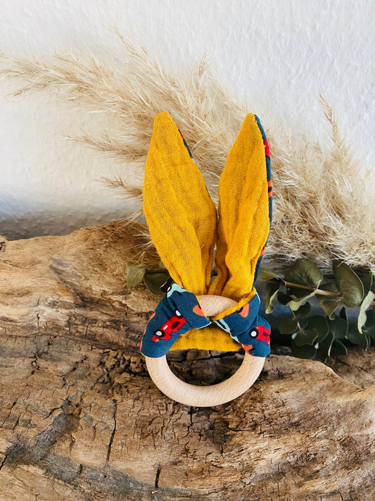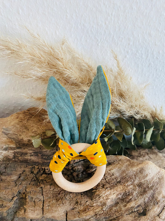 Beißring bunte Regentropfen mit Senfgelb